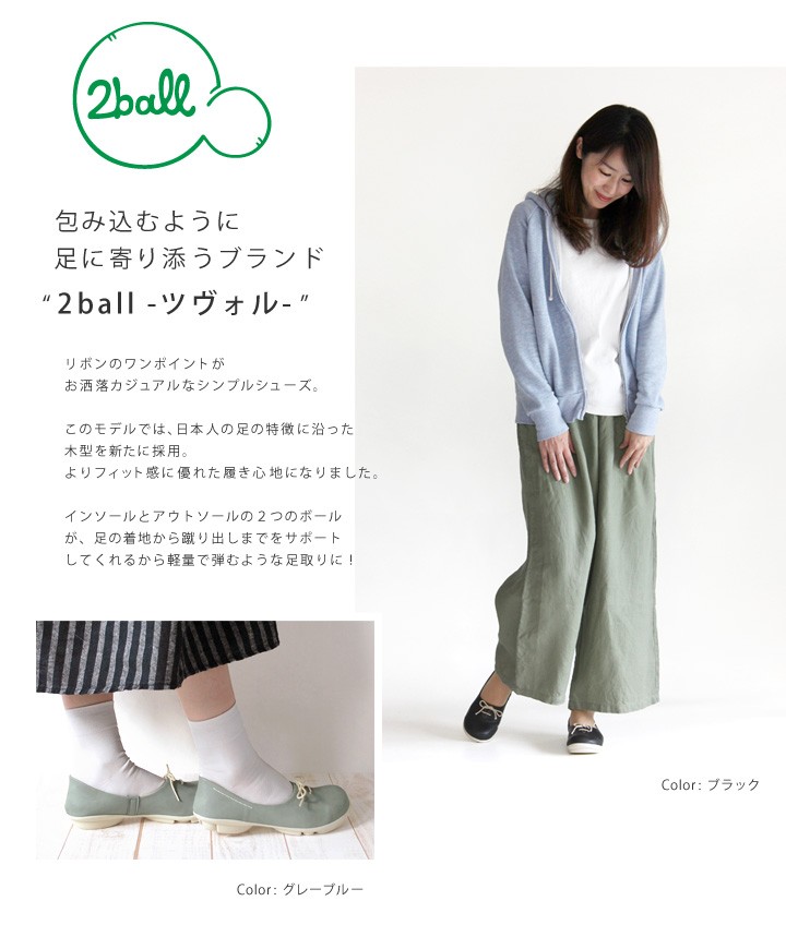 リゲッタの姉妹ブランド「2ball/ツヴォル」飾りリボンのフラットシューズ