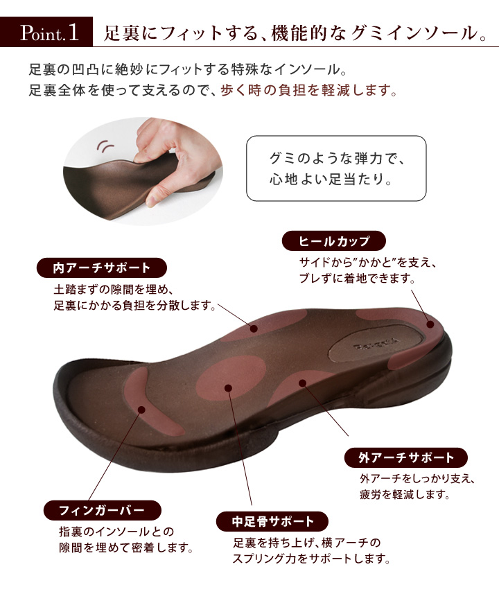 弾力があって肌辺りが柔らかいグミインソールが人気の秘密。