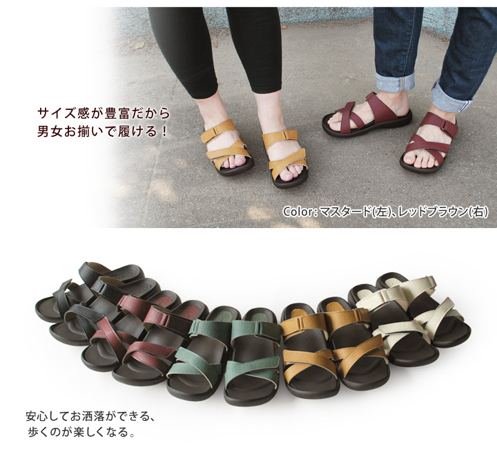 調節ができて靴下を履いても履けるので、 オフィス等、室内履きにも人気のサンダルです 。
