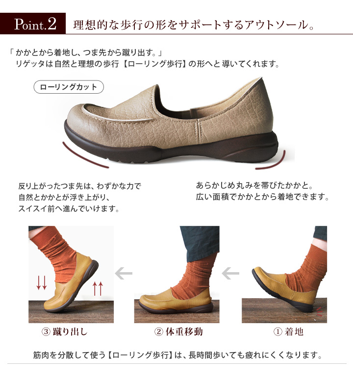 リゲッタ特有の「ルーペインソール」が足に絶妙にフィットします。