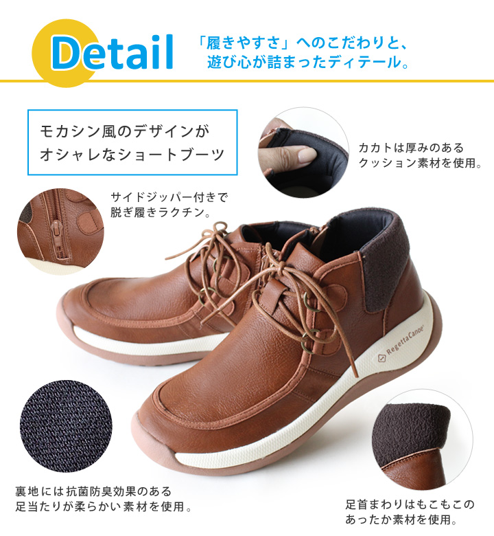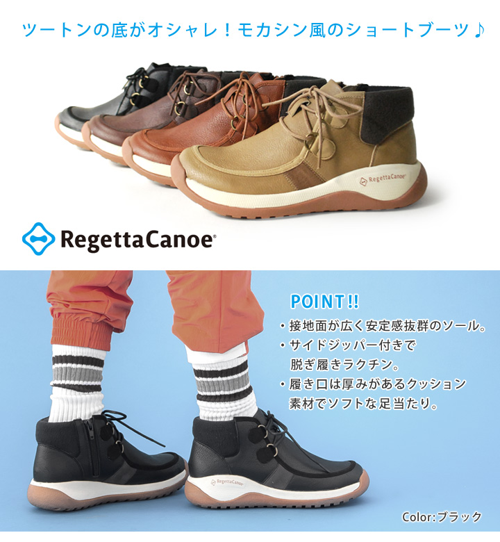 RegettaCanoe CCME002メモリサイドジップモカシン風ショートブーツ