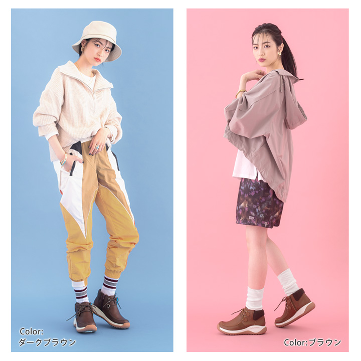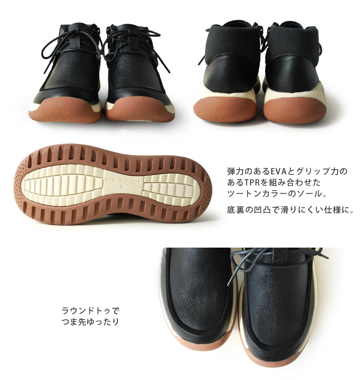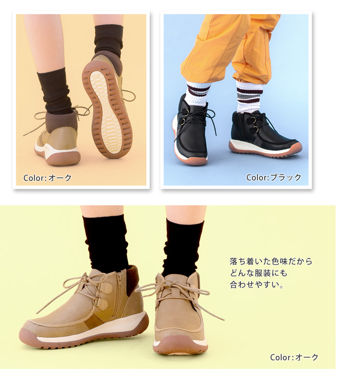 規則的な凹凸の底がユニークで、 ツートーンカラーがオシャレなソール メモリからモカシン風のショートブーツが登場!!
