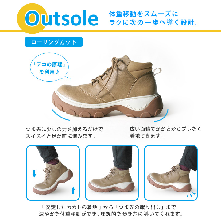 サイズ調節しやすいレースアップだから 甲高、甲低の方も安心 。