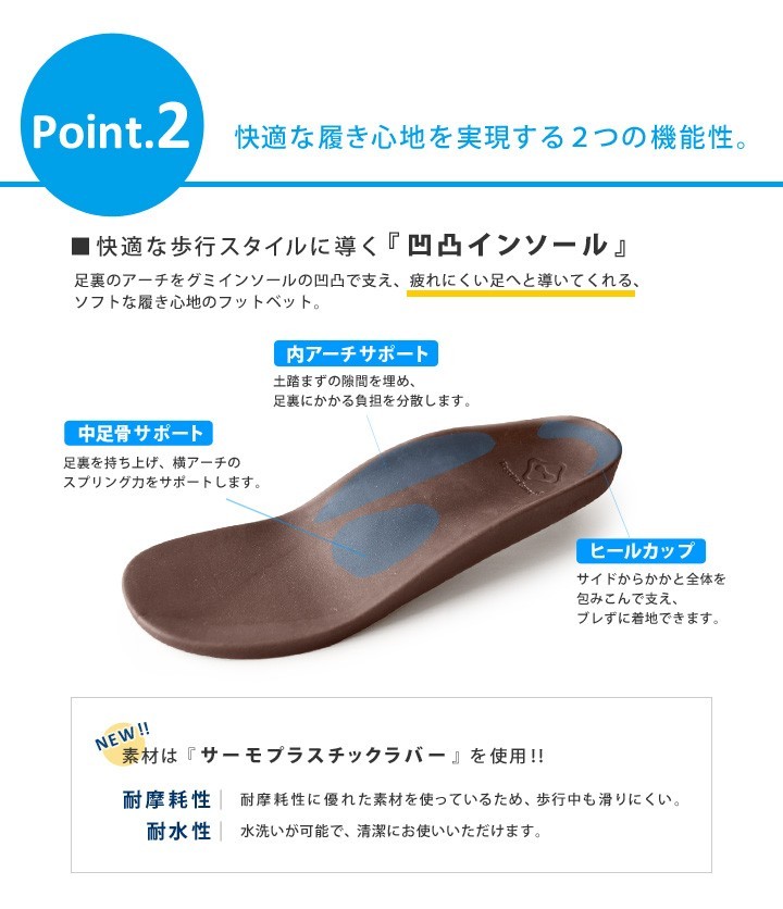 インソールにはゴム素材を使用しているので、 いつものグミインソールよりも少し硬めの履き心地となっています。