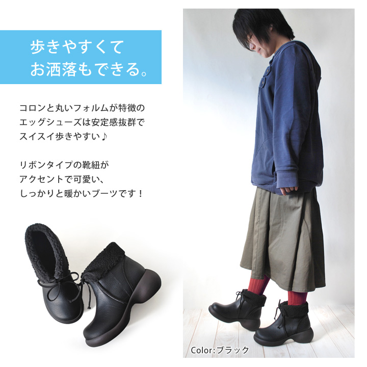 リゲッタカヌーからエッグシューズがバージョンアップして登場! 全体的にコロンと丸い形の靴底がなんとも可愛いです♪ 女性に人気のエッグヒールタイプです☆ 折り返しのボアが可愛く、履き口あったかで、スエード調のリボン紐がアクセント! ボリュームのある足元を演出でき、 冬のコーディネートが盛り上がります!! カラー ブラック(BLK) ブラウン(RBR) キャメル(CAM) サイズ S(22.0㎝~22.5㎝) M(23.0㎝~23.5㎝) L(24.0㎝~24.5㎝) LL(25.0㎝~25.5㎝) 価格 ¥13,800(税込)