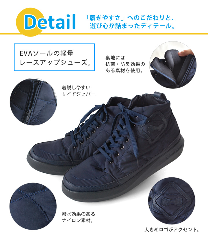 メンズカヌーにハイカットのエッジウェーブシューズ登場! ソールにEVA素材を使用しているので、 軽量でとっても歩きやすいです! 紐でしっかりホールドできるので 歩行中に脱げる心配がなく安心してお履きいただけます! デニムとも相性バツグンです♪ 年中履ける定番アイテムにおすすめです‼ カラー ブラック(BLK) カーキ(KHA) ネイビー(NVY) サイズ S(25.0㎝~25.5㎝) M(26.0㎝~26.5㎝) L(27.0㎝~27.5㎝) 価格 ¥12,800(税込)