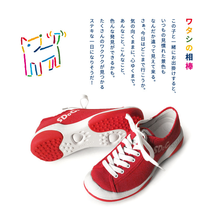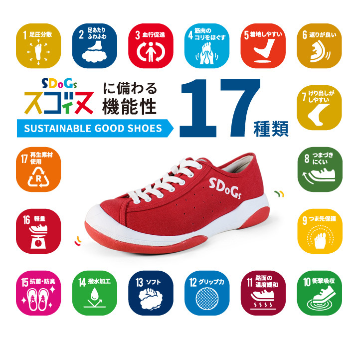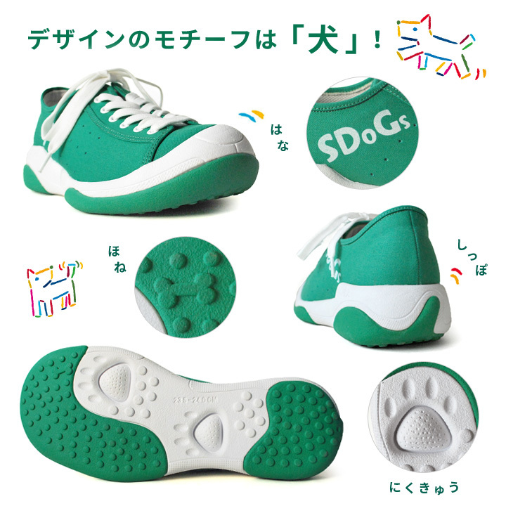 「気分も地球も心地よく」をコンセプトに生まれたブランド 「SDoGs-スゴィヌ-」 ペットボトルの再生素材から生産された繊維でつくられたアッパー素材と 製造時に有害物質が発生せず リサイクル可能なソールを使用することで 地球環境にも配慮されたエコロジー商品を目指し、 キャンバス部分の再生ポリエステル使用率は100%を実現しました。 足に優しい機能も備わっているのでリカバリーシューズとしても使用可能です。 ファッションとして楽しめて環境にも優しいアイテム、 こころが「ウキウキ」する1足をアナタにも。 毎日のちょっとしたお出かけがきっとステキなひとときになりますよ。 カラー シェルホワイト(SWH) ブラック(BLK) グリーン(GRN) イエロー(YEL) ネイビー(NVY) レッド(RED) ライトブルー(LBL) サイズ 22.5㎝~23.0㎝ 23.5㎝~24.0㎝ 24.5㎝~25.0㎝ 25.5㎝~26.0㎝ 26.5㎝~27.0㎝ 27.5㎝~28.0㎝ 価格 ¥10,980(税込)
