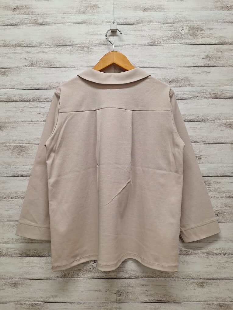 シャツ襟でカフス袖のすっきりとしたデザインに